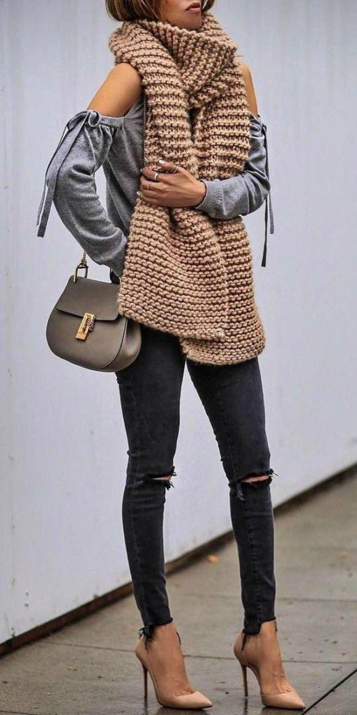 Knitted scarves are a great way of curbing the harsh cold weather from numbing your neck. Over-the-top large and bright deep colored scarfs can bring out a pleasant accent to any winter. A scarf can be worn with almost anything from jeans, shorts, to dresses to achieve a chic look.
